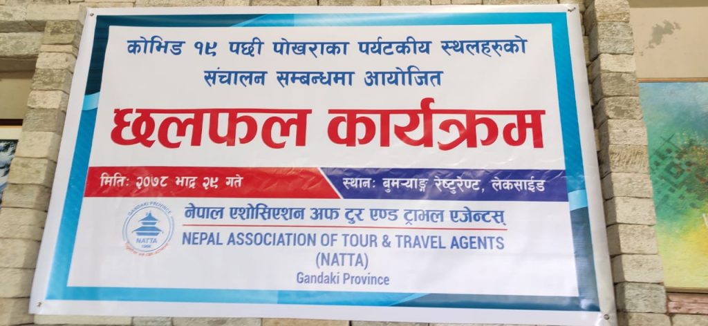 With the initiation of NATTA Gandaki Province, an interaction program was held on 14 September, 2021 at Boomerang Restaurant, Lakeside regarding the re-opening of tourism sites in Pokhara.